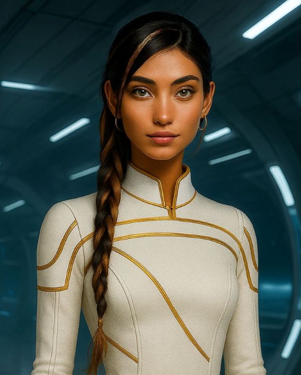 | Physical Description | Not overly tall, Siyrena is designed to look like a Builder/Kryll halfbreed. She is slender and graceful. Her gold-streaked, black hair is kept in a braid down her back and reaches to her butt. |